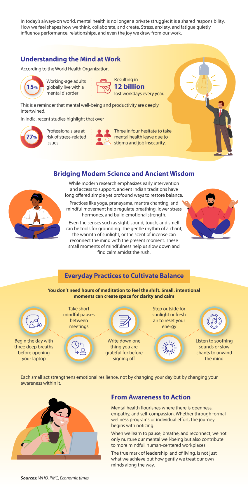 The insight: mindfulness isn’t about long hours of meditation—it’s about small, consistent actions like deep breathing before starting your day, taking mindful pauses between tasks, and practicing gratitude. These habits strengthen emotional resilience and foster collaboration.